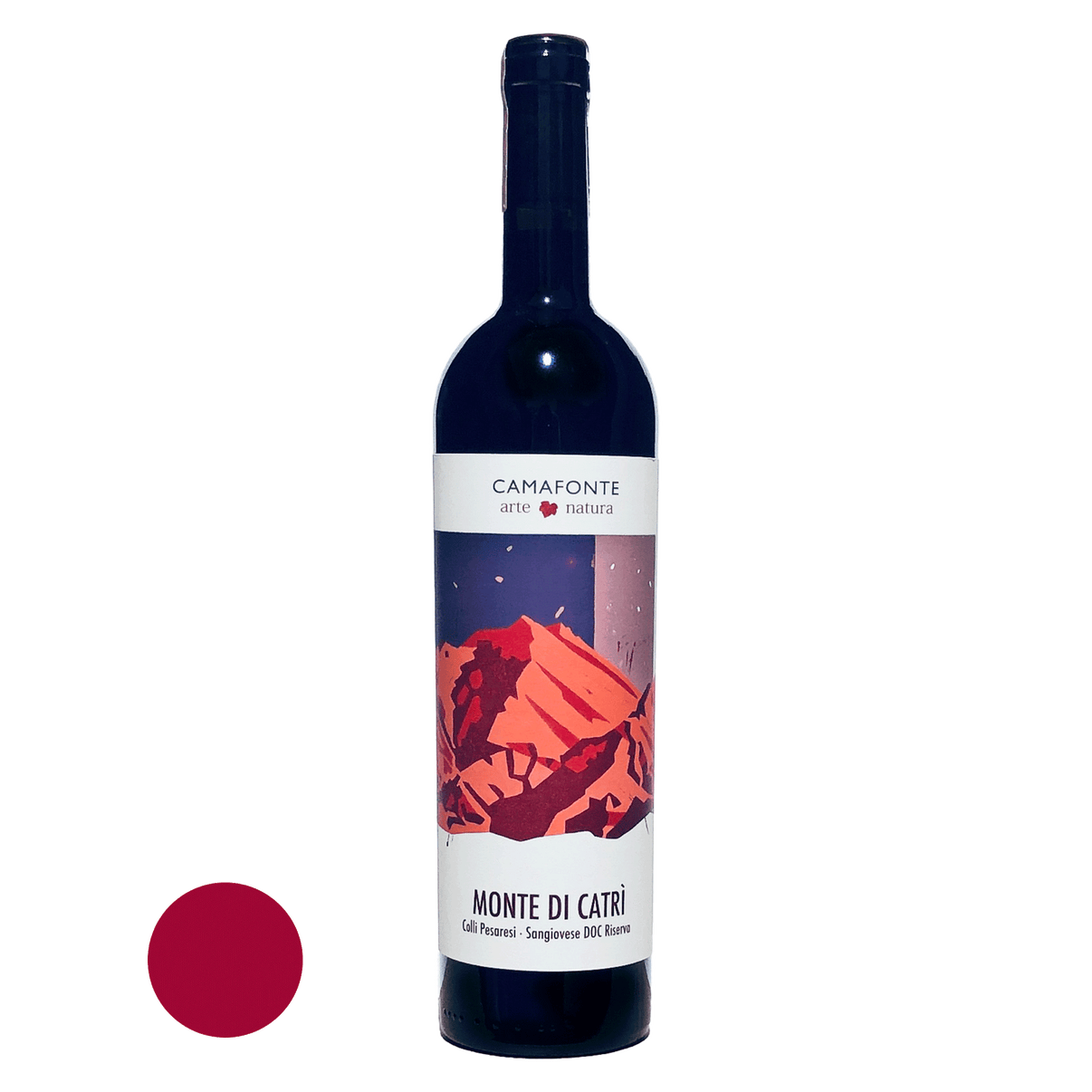 "Monte di Catrì" ist eine abgewandelte Schreibweise des "Monte Catria". "Catria" lässt sich aus dem Latenischen "cathedra" ableiten, was "der höchste Sitz" bedeutet. Mit 1.702 Metern ist der Monte Catria der höchste Berg in unmittelbarer Nähe zu Camafonte. Und diese "hohen" Gefühle verbinden wir auch mit diesem besonders gut gereiften Wein! Damit noch nicht alles: In der Antike galt der Catria mythisch als Sitz des Gottes Jupiter, auf italienisch "Giove". Und die regionaltypische Rebsorte Sangiovese, aus der dieser Wein zum größten Teil besteht, bedeutet so viel wie "das Blut Jupiters". So schließt sich der Kreis ...